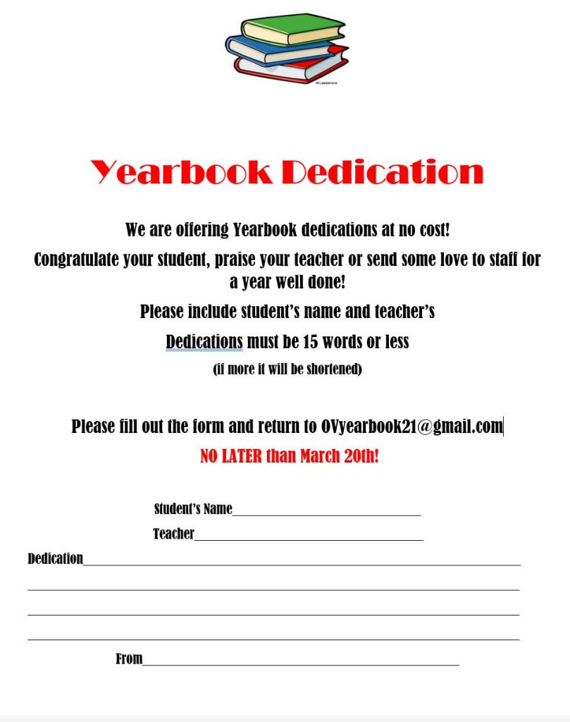 Email OVyearbook21@gmail.com to submit dedication