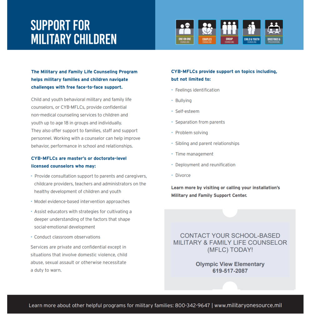 To Contact Olympic View’s Military Counselor, Norma Jimenez, call 619-517-2097