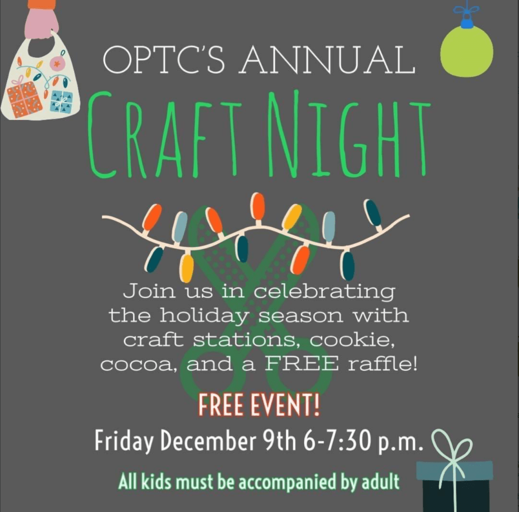 Join us in the school auditorium for our annual craft night! OPTC is sponsoring this free event!